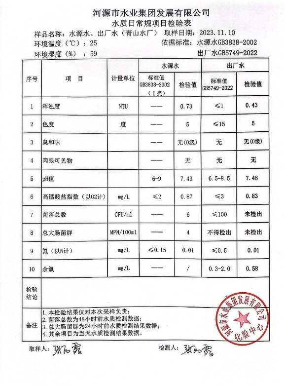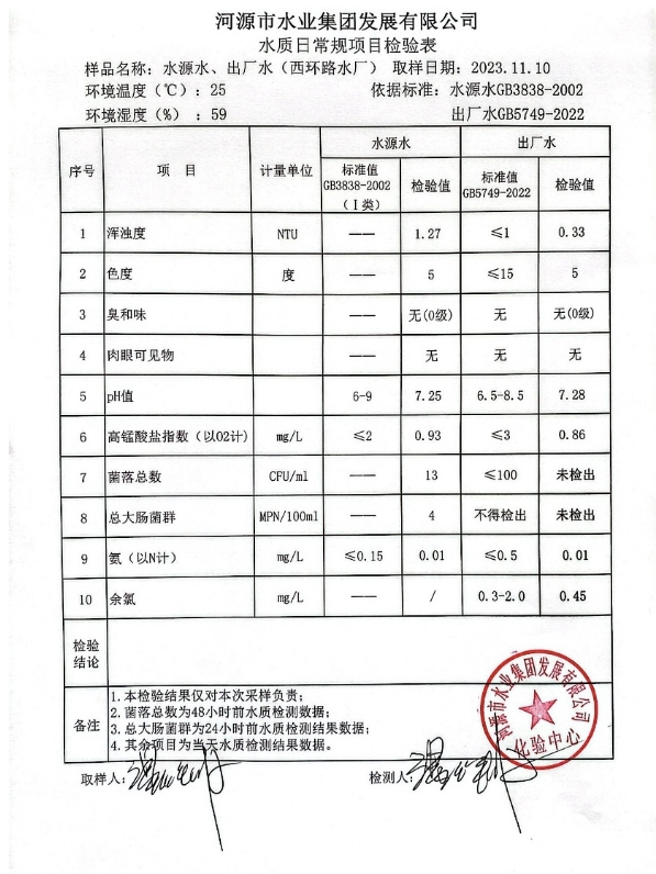 2023年11月10日水质检验报告