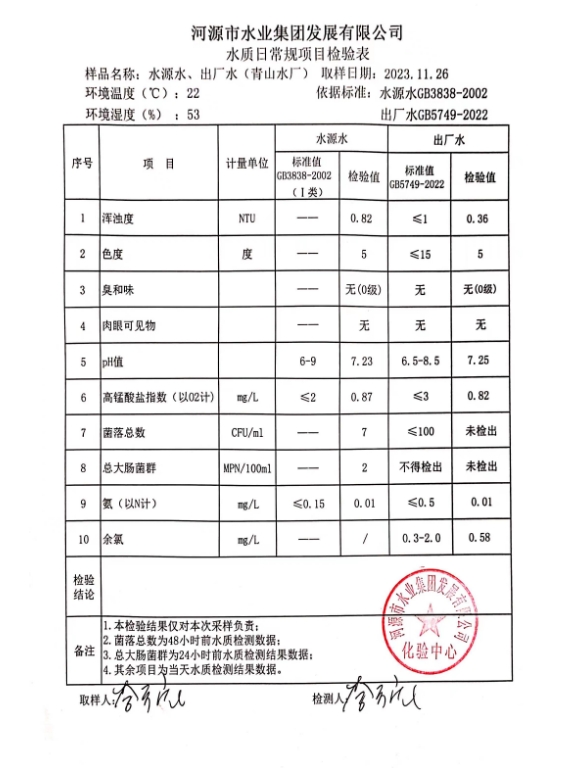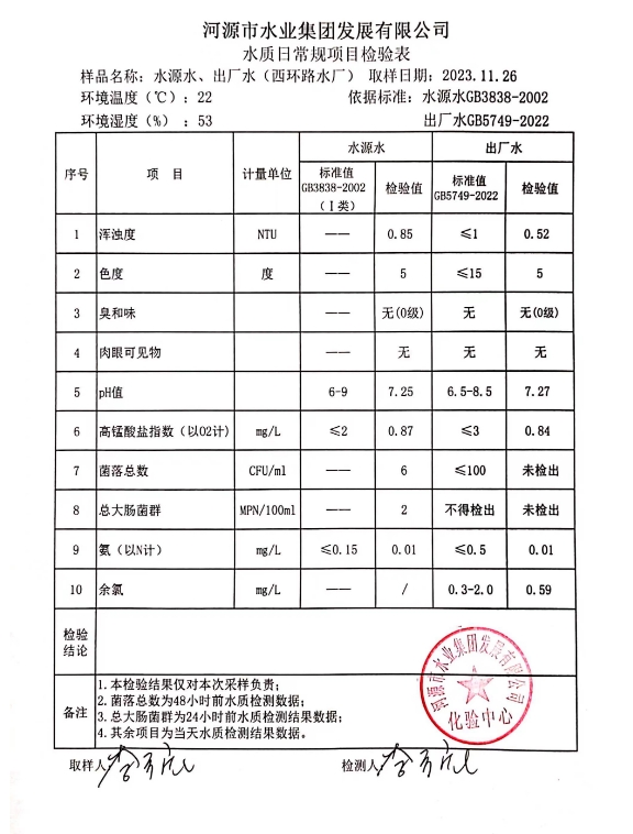 2023年11月26日水质检验报告