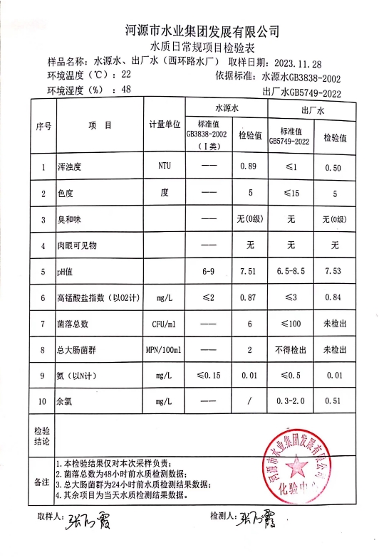 2023年11月28日水质检验报告