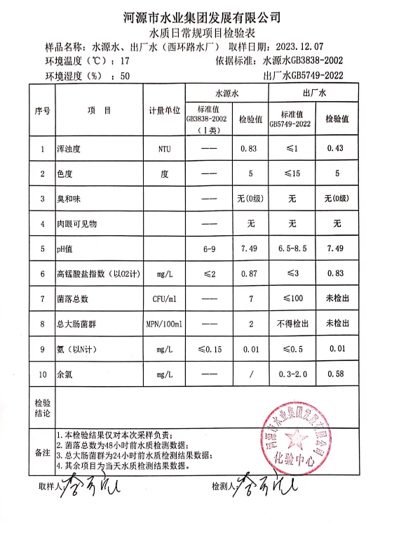 2023年12月7日水质检验报告