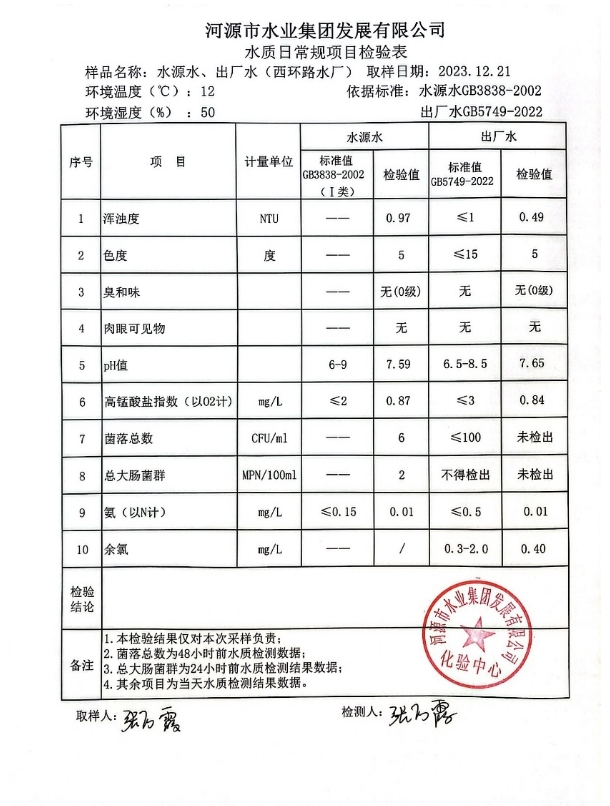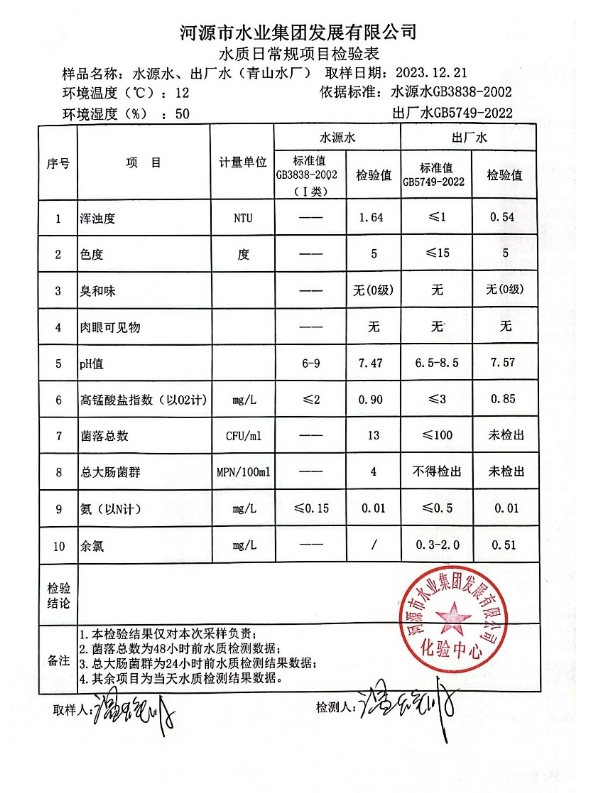 2023年12月21日水质检验报告