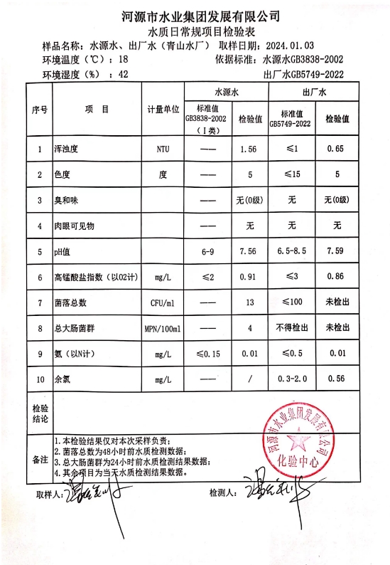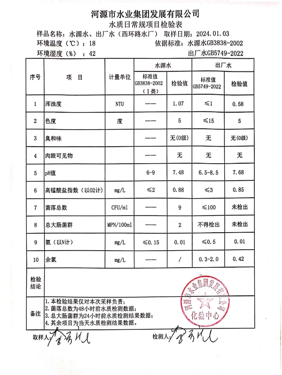 2024年1月3日水质检验报告