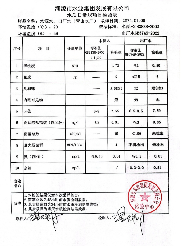 2024年1月9日水质检验报告