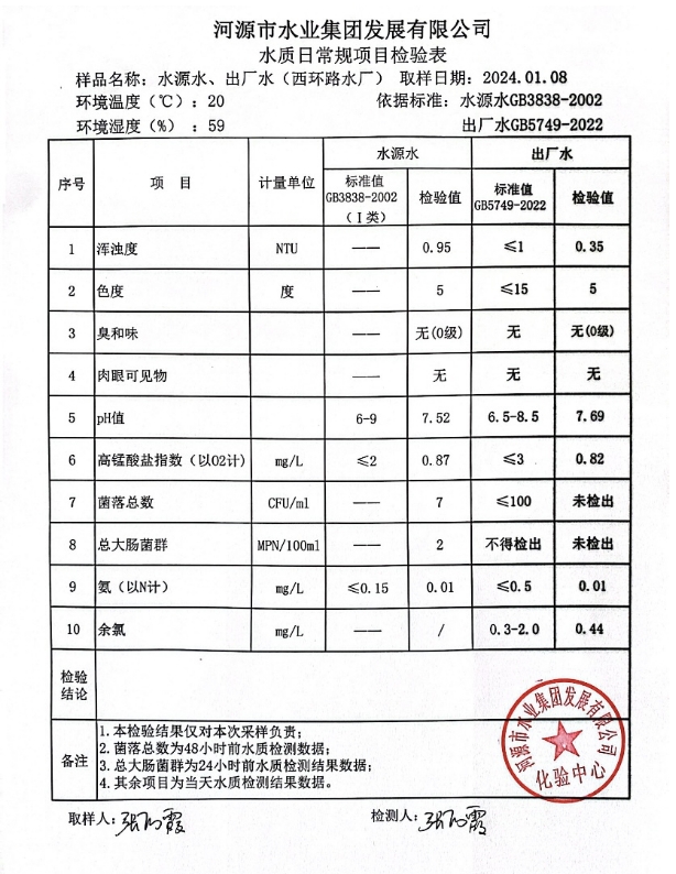 2024年1月7日水质检验报告