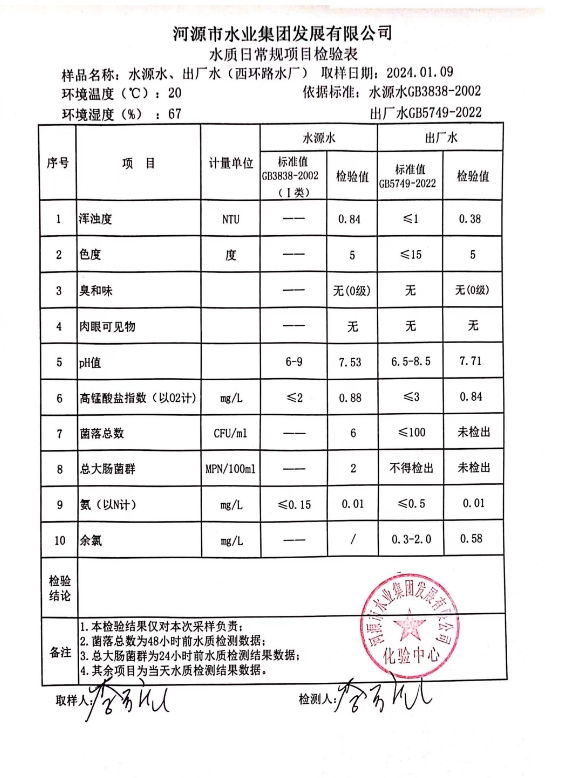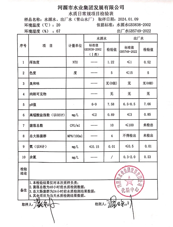 2024年1月9日水质检验报告