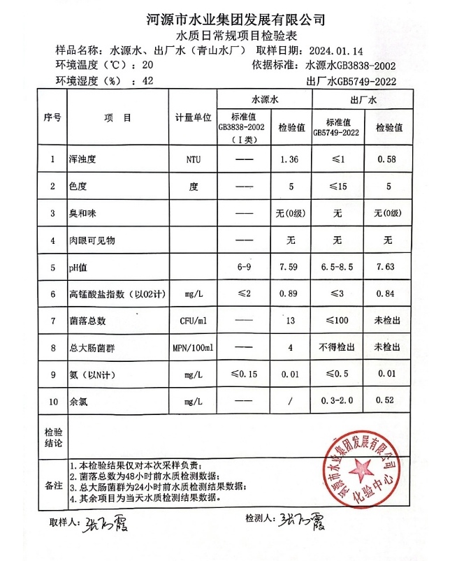 2024年1月14日水质检验报告