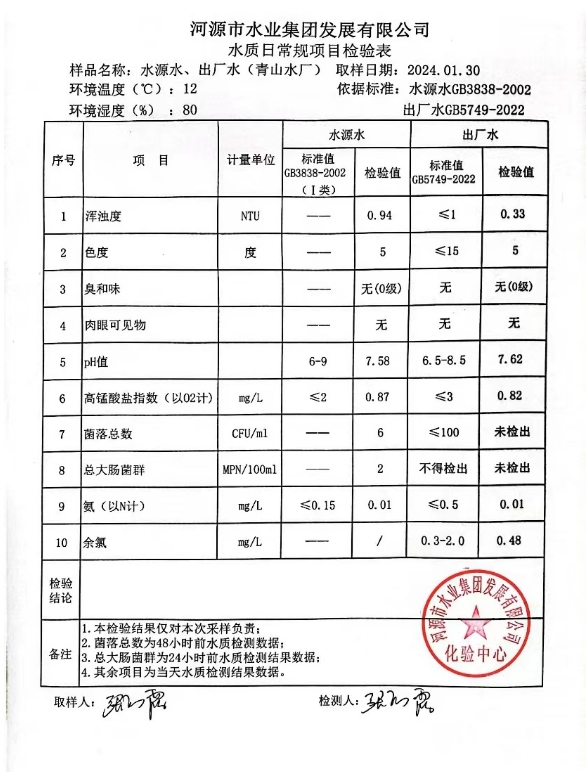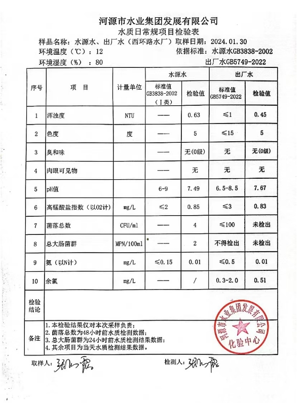 2024年1月30日水质检验报告