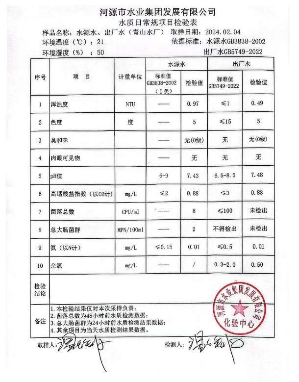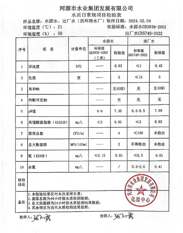 2024年2月4日水质检验报告
