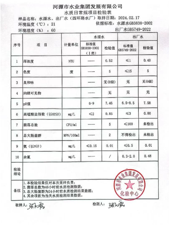 2024年2月17日水质检验报告