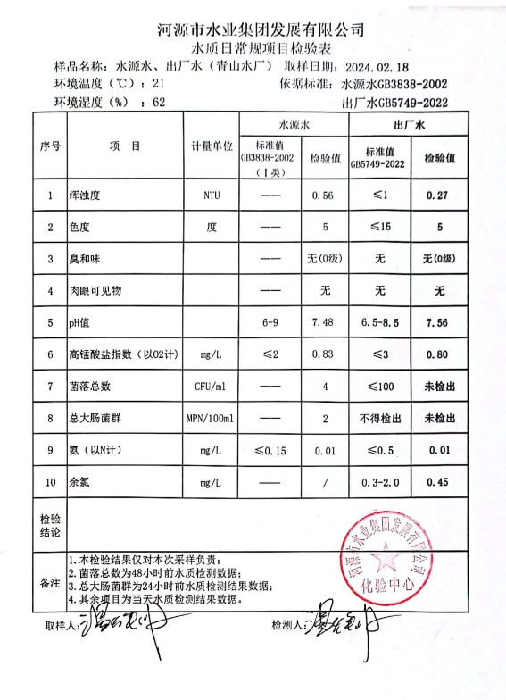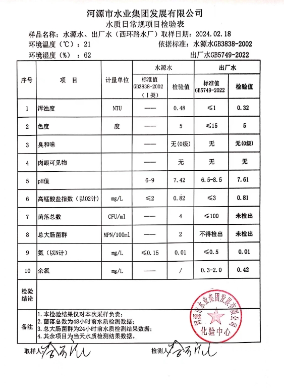 2024年2月18日水质检验报告