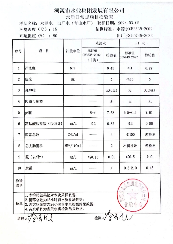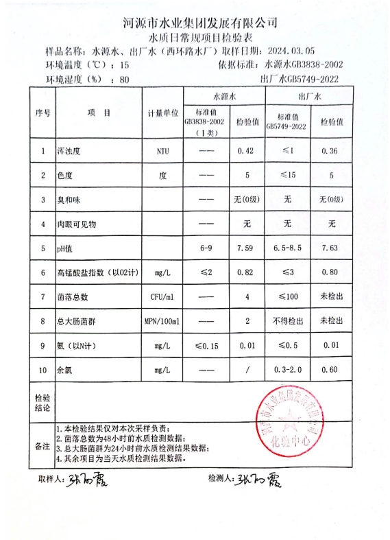 2024年3月5日水质检验报告