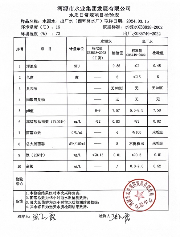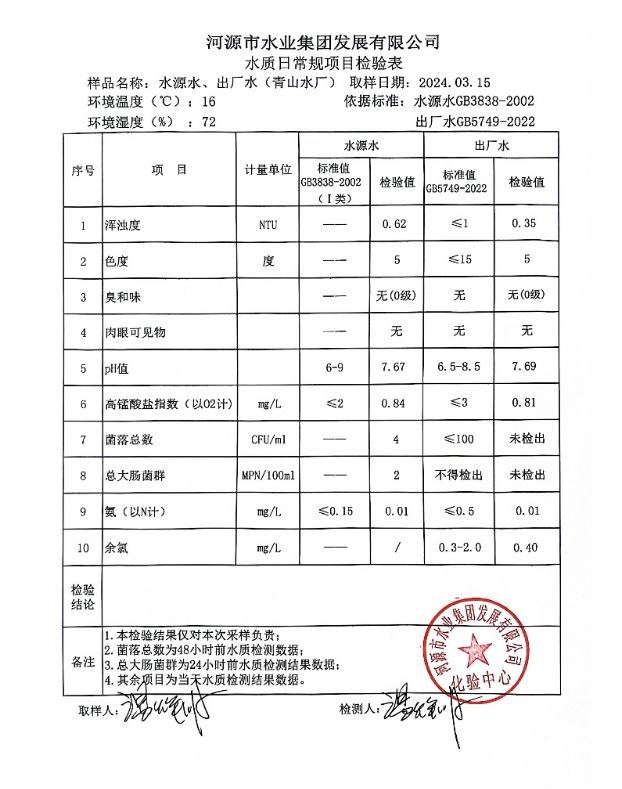 2024年3月15日水质检验报告