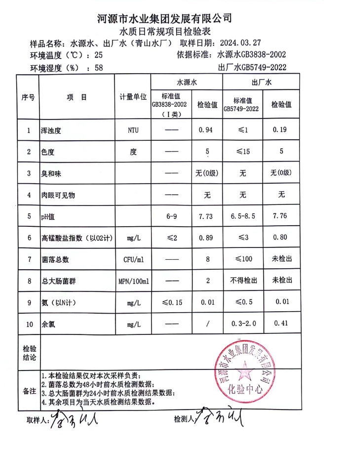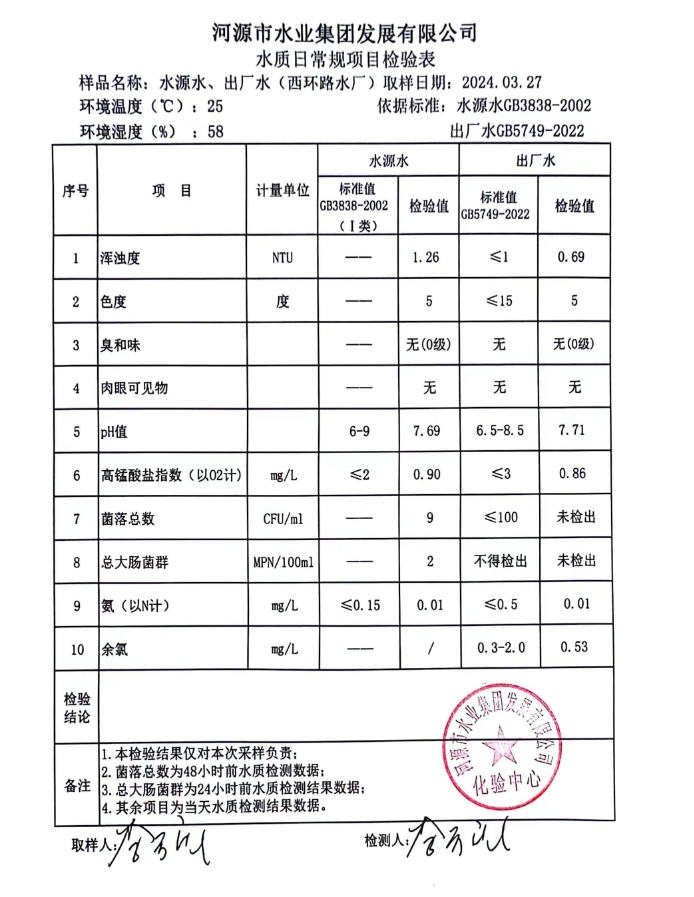 2024年3月27日水质检验报告