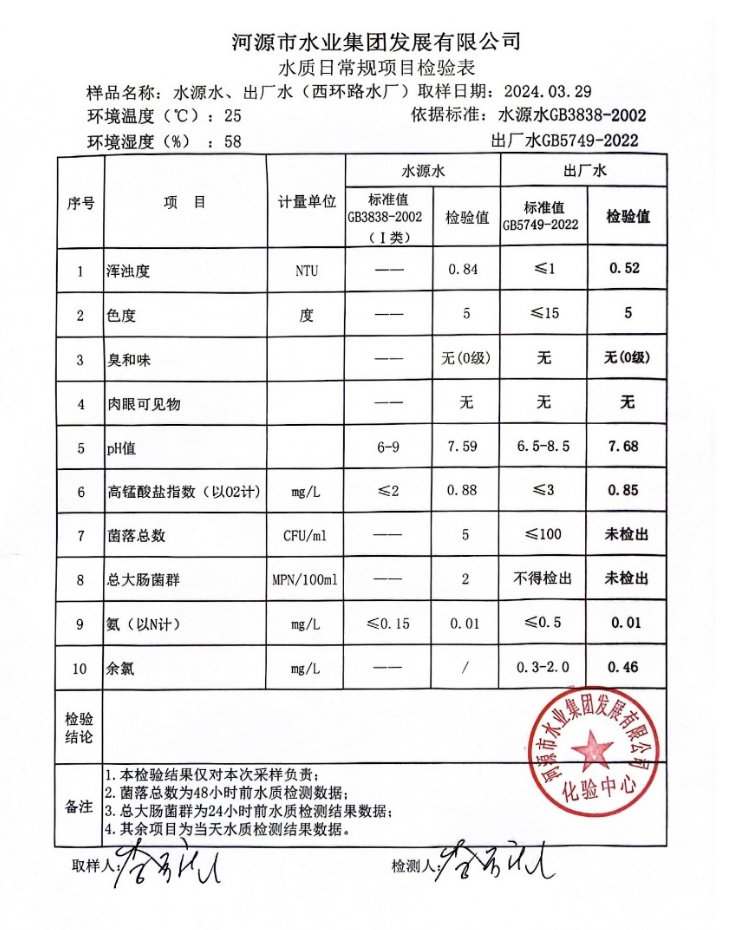 2024年3月29日水质检验报告