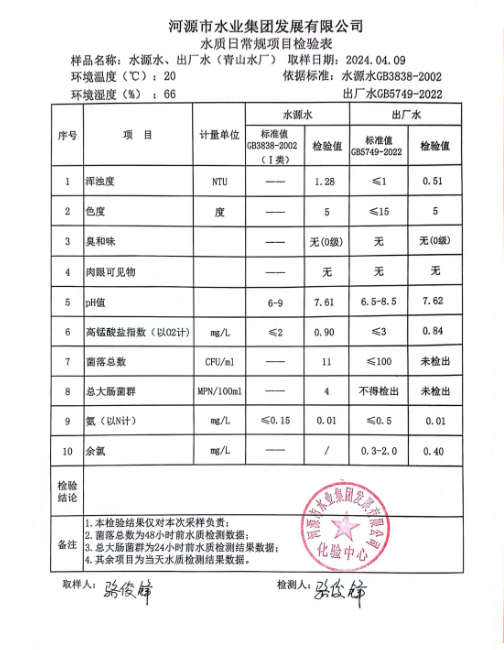 2024年4月9日水质检验报告
