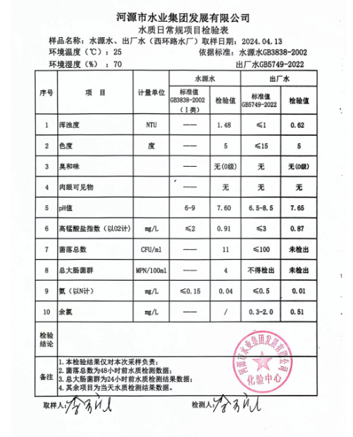 2024年4月13日水质检验报告