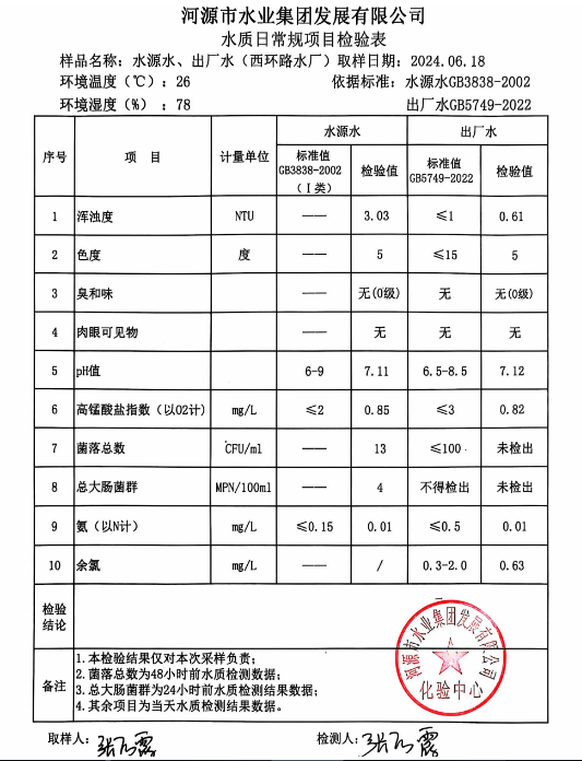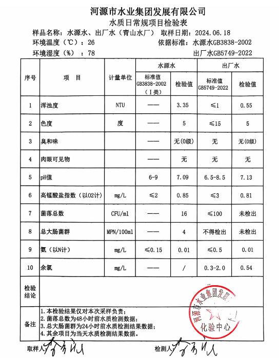 2024年6月18日水质检验报告