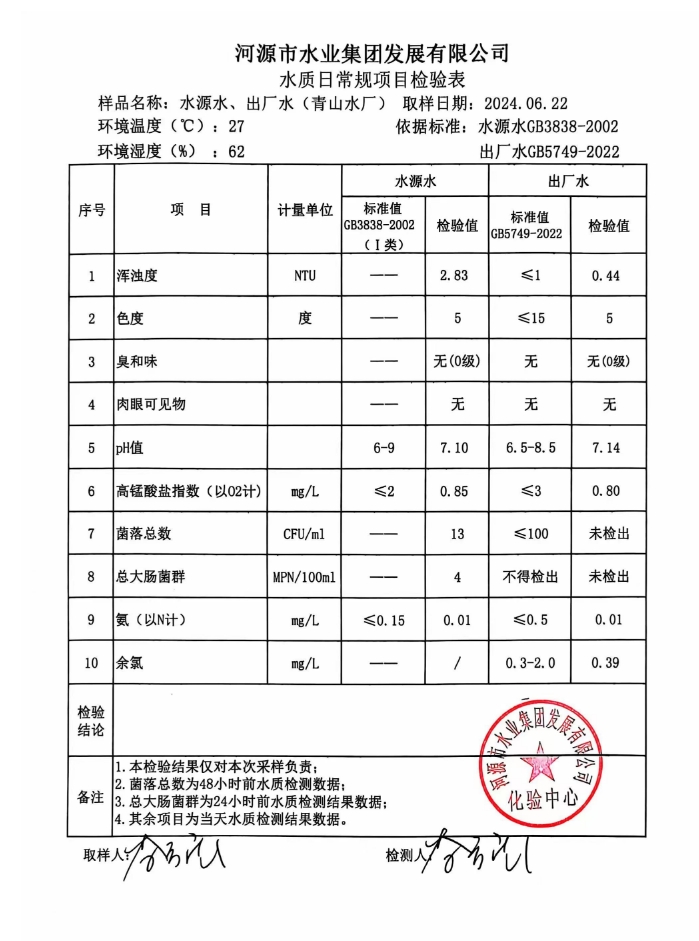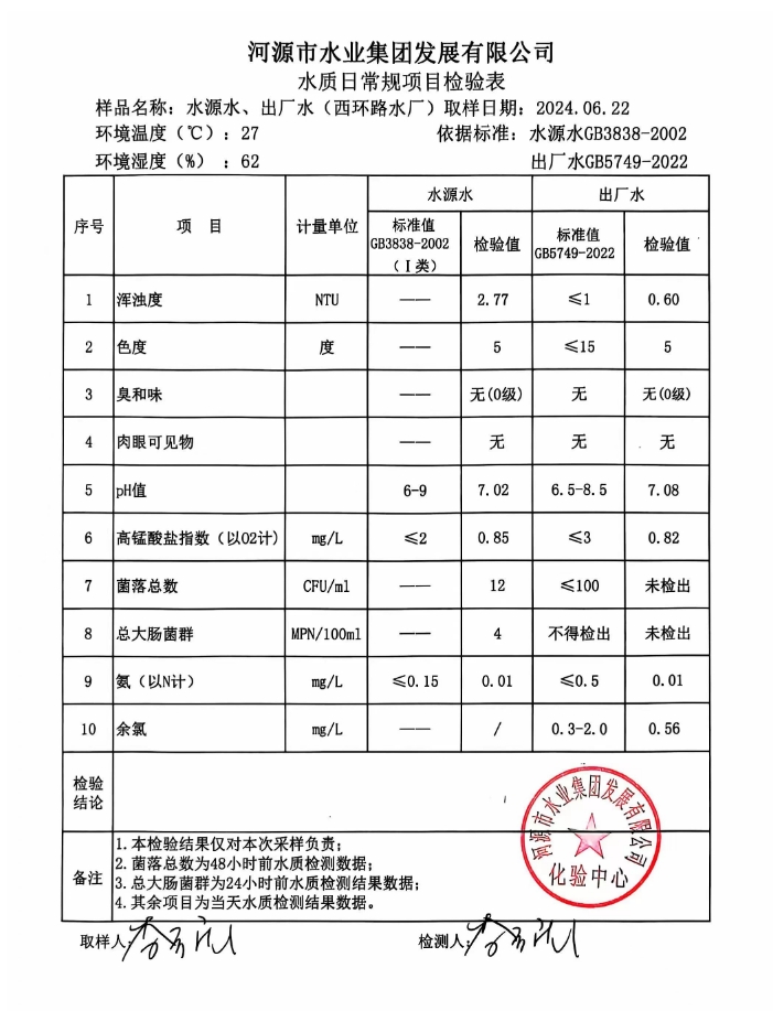 2024年6月22日水质检验报告