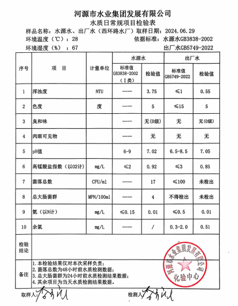 2024年6月29日水质检验报告