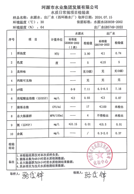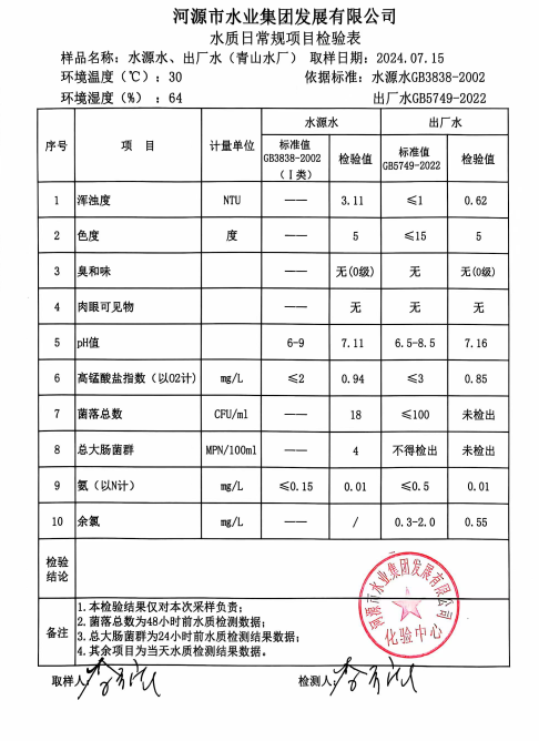 2024年7月15日水质检验报告