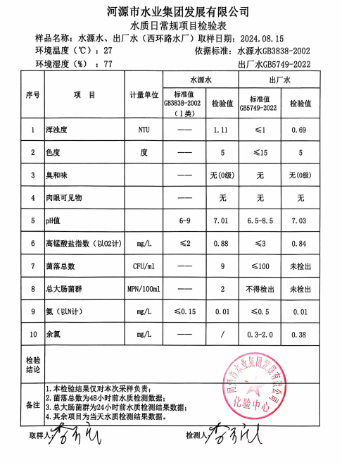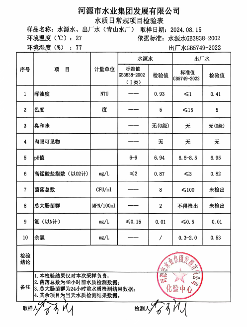 2024年8月15日水质检验报告