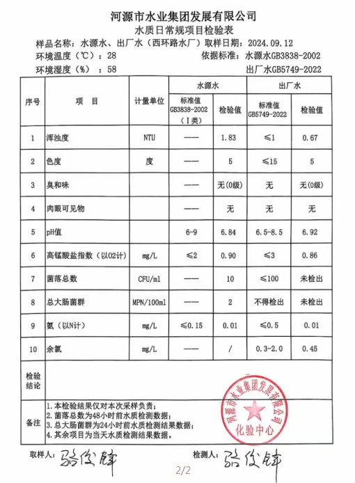 2024年9月12日水质检验报告