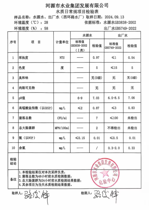 2024年9月13日水质检验报告